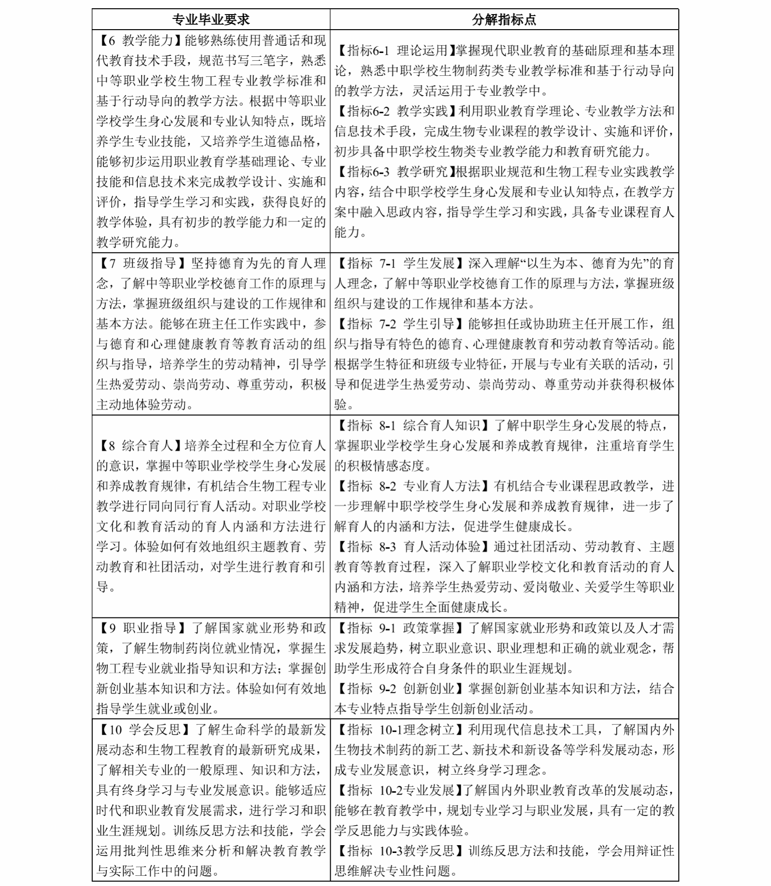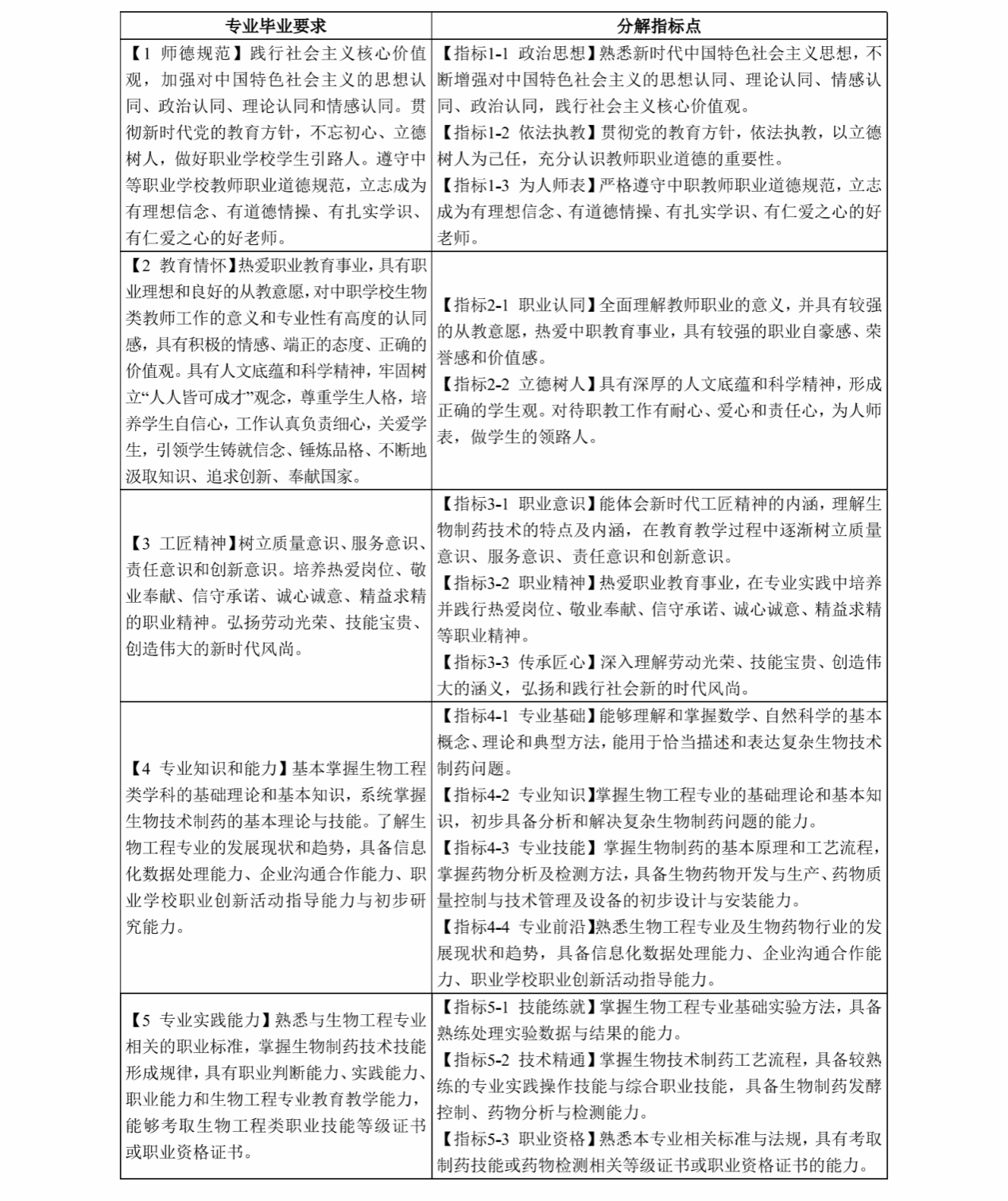 生物工程专业毕业要求 来源:毕业要求 2024/09/27 本专业学生主要学习生物工程、职业教育教学等方面的基本理论和基本知识,接受生物技术制药工艺与分析检测、职业教育教学方法与技能等方面的基本训练,具有分析和解决生物技术制药、学科教育教学领域问题的基本能力。